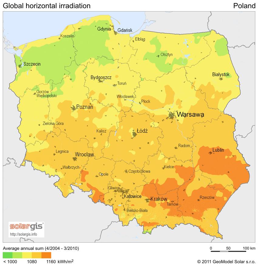 Map of Poland climate. Poland climate map (Eastern Europe - Europe) to print. Poland climate map (Eastern Europe - Europe) to download. Poland's long-term and short-term climate patterns are made transitional and variable by the collision of diverse air masses above the country surface. Maritime air moves across Western Europe, Arctic air sweeps down from the North Atlantic Ocean, and subtropical air arrives from the South Atlantic Ocean. Although the Arctic air dominates for much of the year, its conjunction with warmer currents generally moderates temperatures and generates considerable precipitation, clouds, and fog. When the moderating influences are lacking, winter temperatures in mountain valleys may drop to a minimum of −20 °C (−4 °F) as its shown in Poland climate map. The spring arrives slowly in March or April, bringing mainly sunny days after a period of alternating wintry and springtime conditions. Summer, which extends from June to August, is generally less humid than winter.